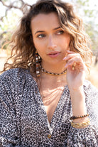 Product gegevens: Set van 3 elastische armbandjes. Gemaakt van brass en glass. Heeft een mooie metallic afwerking.