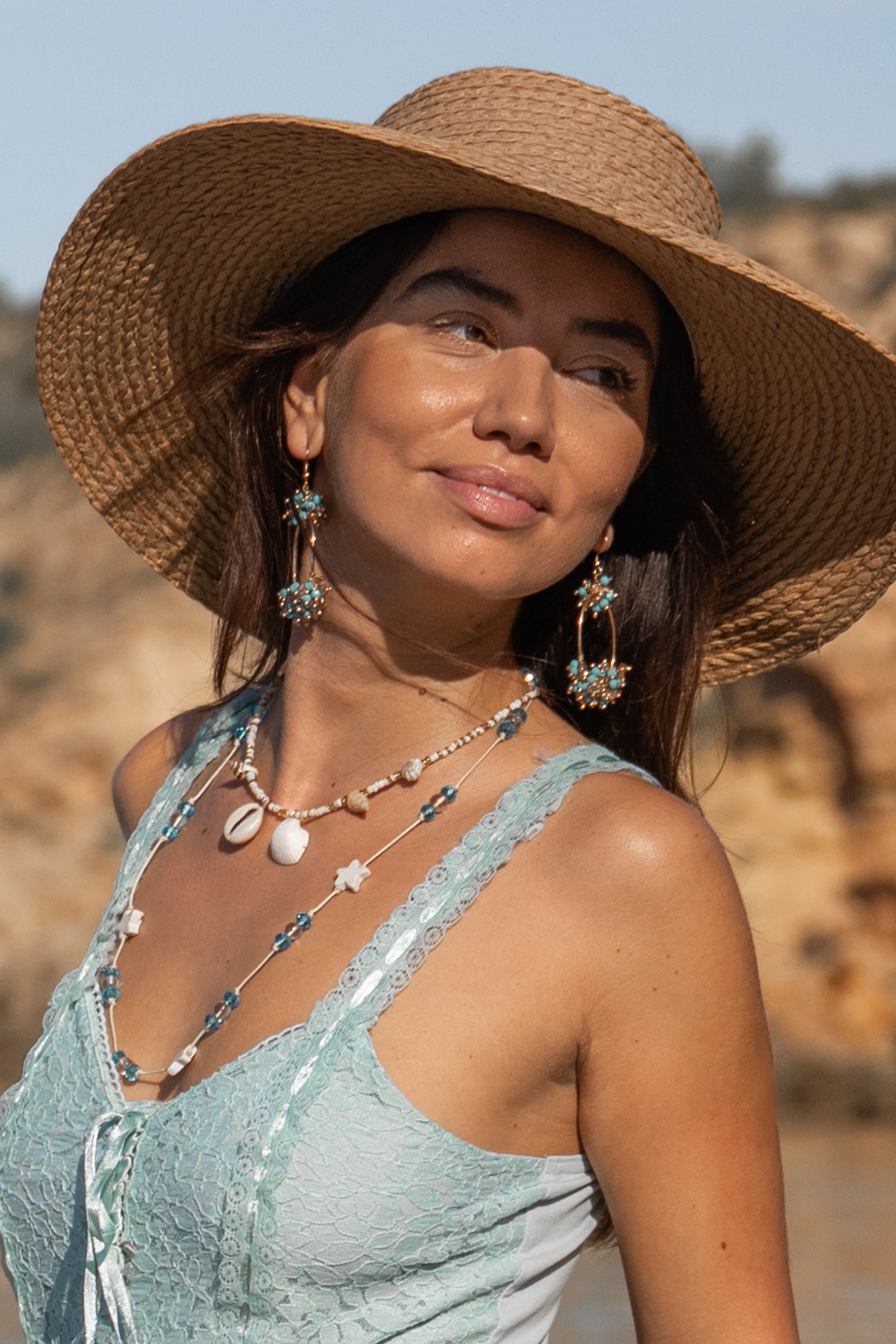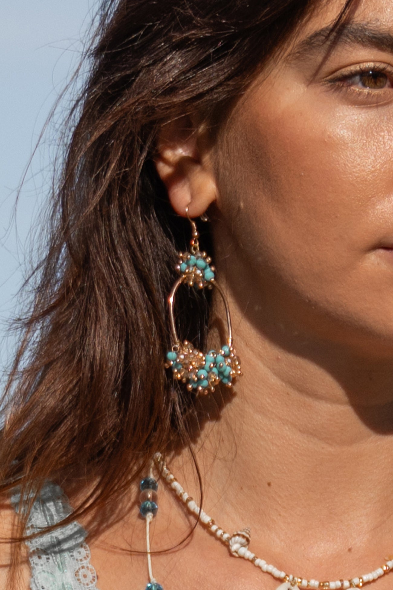 De Earring Almendra Turquoise zijn turquoise hang oorbellen dames die kleur, detail en Ibiza flair samenbrengen in één elegant accessoire. Een zomerse finishing touch voor iedere vrouwelijke outfit.