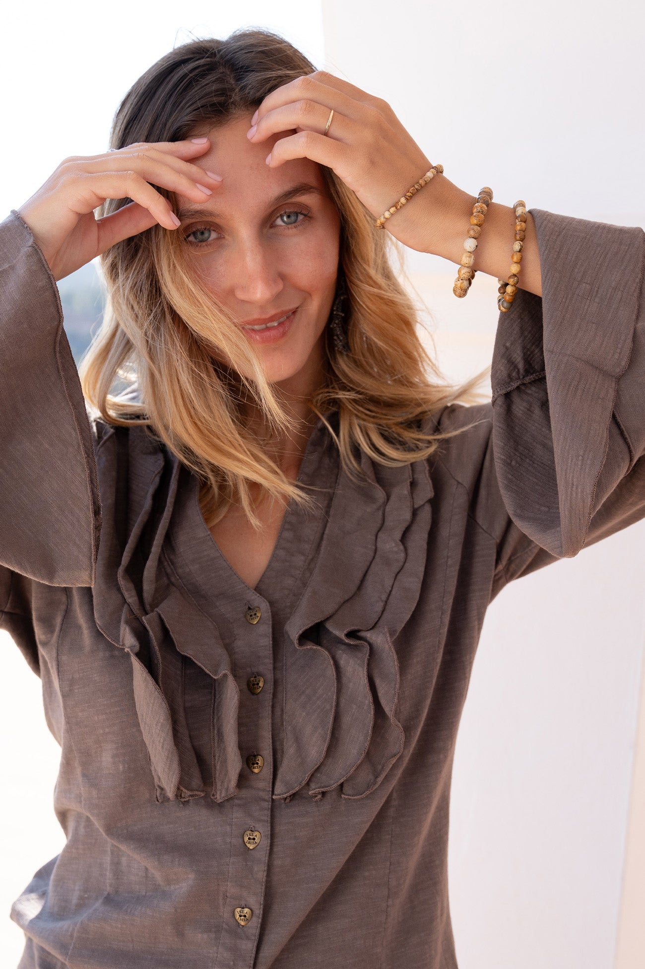 De Bracelet Set Camposoto Natural is de perfecte aanvulling op je najaars- en winterlook van 2025. Deze prachtige set bestaat uit verschillende armbanden met natuurlijke elementen, zoals houten kralen en leren details. De warme kleuren en aardse materialen passen perfect bij het herfstige en winterseizoen. Deze armbanden zijn een echte eyecatcher en geven je outfit een trendy en natuurlijke touch. Een must-have voor dit seizoen!