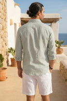 Shirt Juan Antique Green hoort bij de Romantic Soul collectie van Isla Ibiza Bonita. Ten eerste voelt de stof zacht en licht aan op je huid. De antique green kleur geeft een stoere, maar toch rustige basis. Daardoor past dit shirt voor heren perfect in de overgang van winter naar voorjaar én in je zomer garderobe.