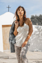 Strap Top Vida Cream hoort bij de Romantic Soul collectie van Isla Ibiza Bonita. Ten eerste voelt de stof zacht en licht aan. De cream tint geeft direct een rustige, vrouwelijke basis. Daardoor draag kan je deze top goed matchen met een vest en in het voorjaar met denim items en zwierige maxi rokken.