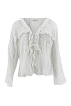 De blouse valt losjes en voelt licht aan op de huid. De afwerking is verfijnd zonder druk te worden. Deze witte bohemian blouse dames laat zich moeiteloos combineren met flared denim of een zachte print rok. De frisse witte tint versterkt de vrouwelijke uitstraling.