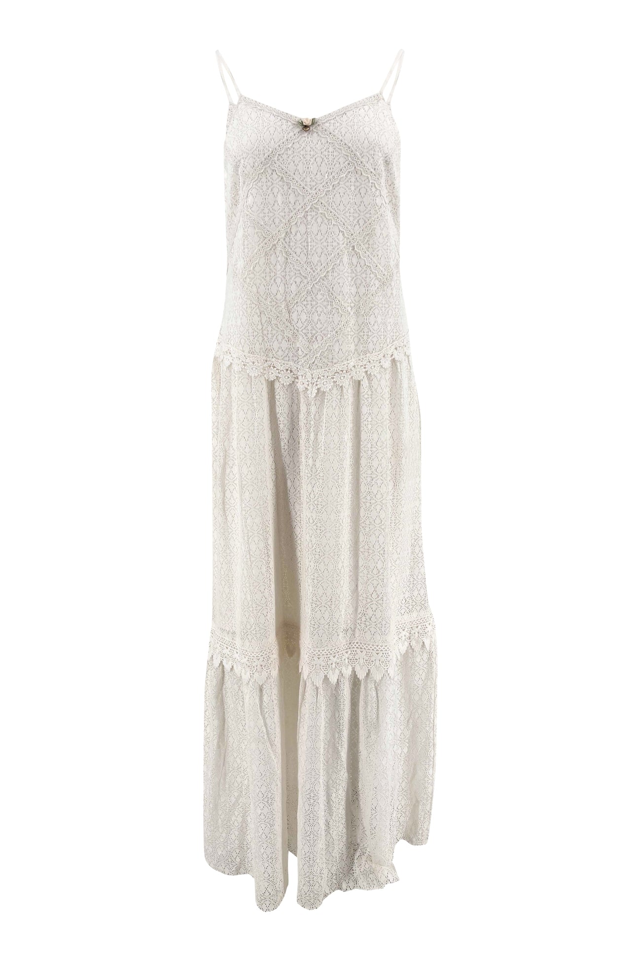 Product gegevens: Mooie lange jurk met verstelbare schouderbandjes, gemaakt van kant en gevoerd met tricot, met ritssluiting in de zijkant