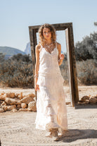 De Long Skirt Lace Cream is een lange kanten rok uit de Romantic Soul collectie van Isla Ibiza Bonita. Deze rok is opgebouwd uit meerdere lagen en verschillende kanten banen, wat zorgt voor een speelse en vrouwelijke look. De cream kleur geeft de lange kanten rok een zachte uitstraling en maakt haar makkelijk te combineren binnen een bohemian garderobe.