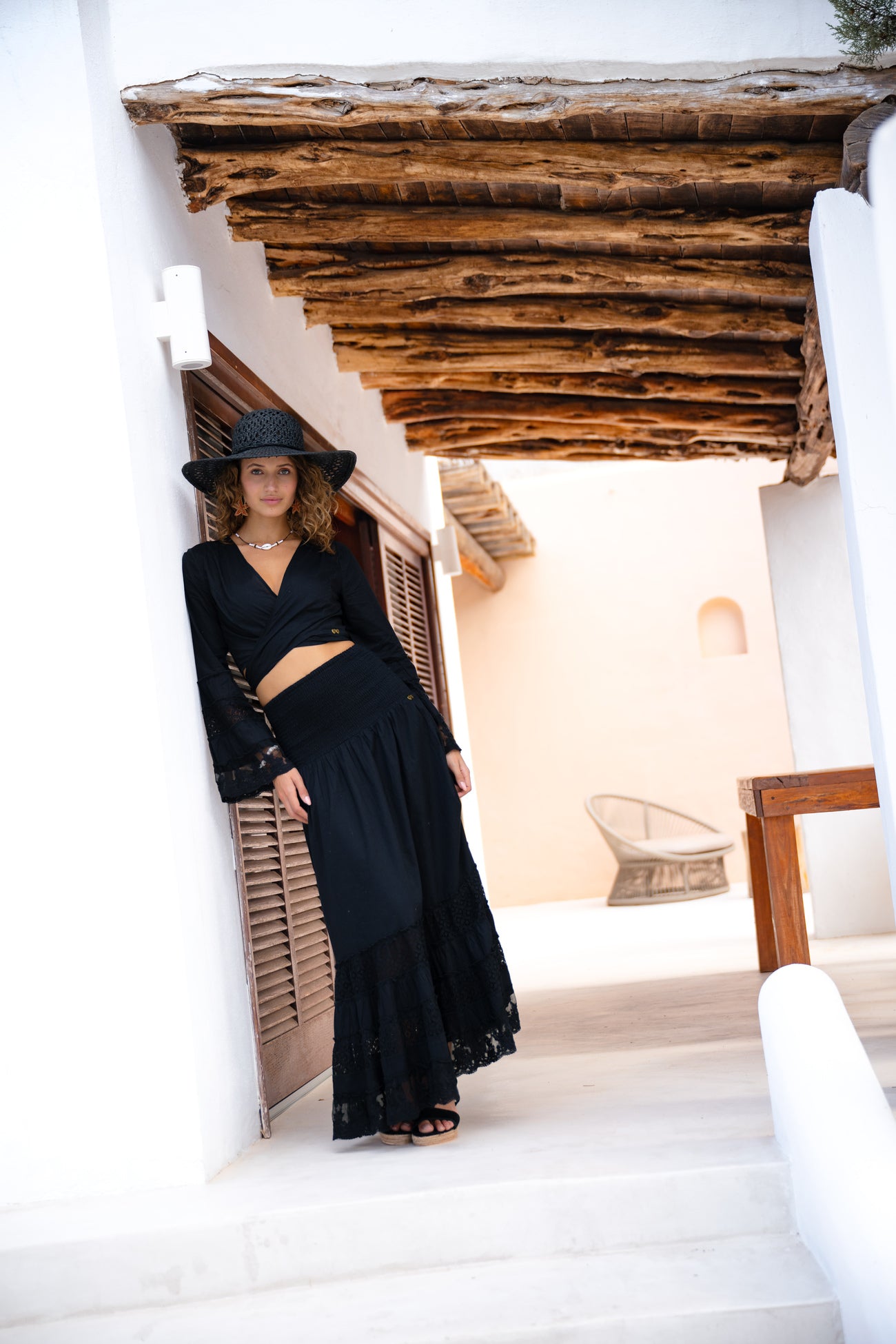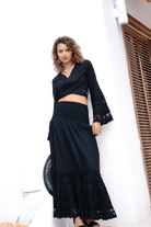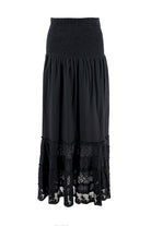 De Long Skirt Morada Black van Isla Ibiza Bonita is een elegante lange zwarte rok met een vrouwelijke en verfijnde uitstraling. Het ontwerp combineert een soepelvallende stof met subtiele kanten details, waardoor de rok direct een romantische Ibiza vibe krijgt.