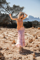 De Strap Top Vida Terra van Isla Ibiza Bonita is een verfijnde bohemian top terra met een warme, vrouwelijke uitstraling. De zachte terrakleur geeft direct die zonovergoten Ibiza vibe, terwijl de kanten details zorgen voor een romantische en rijke afwerking.