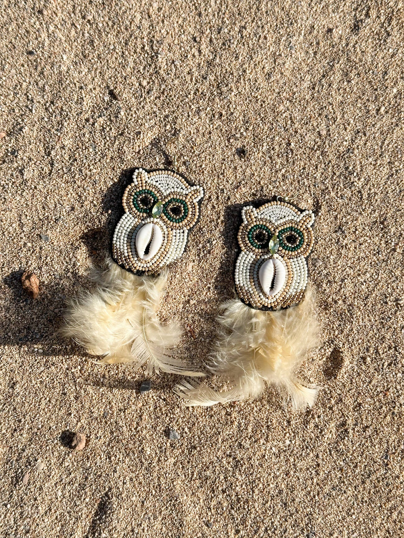 Product gegevens: Oorbellen bewerkt met kralen en veren