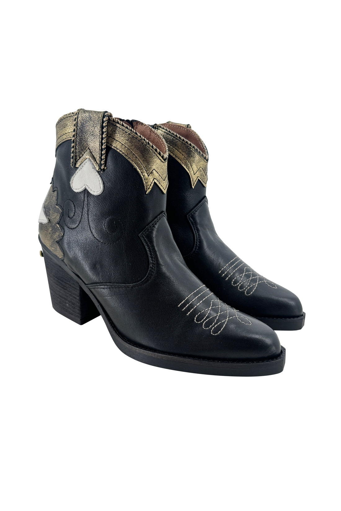 Product gegevens: Mooie western laars tot net over de enkel, met ritssluiting, hakhoogte 7 centimeter, de laarzen zijn van leer met kunststof zool en zijn gemaakt in Spanje