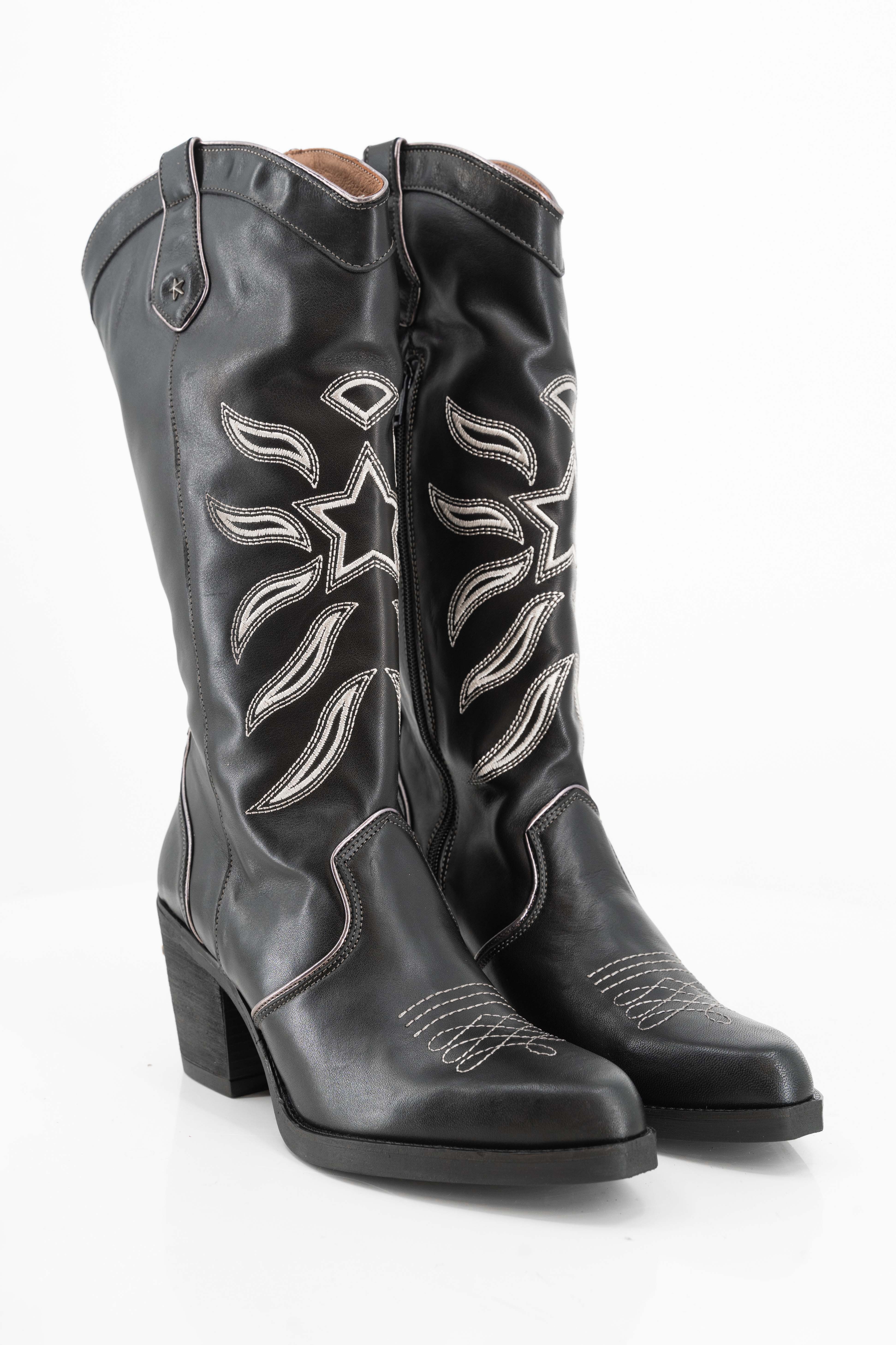 Product gegevens: Mooie western laars met ritssluiting, gemaakt van leer met kunststof zool, hakhoogte is 7 centimeter
