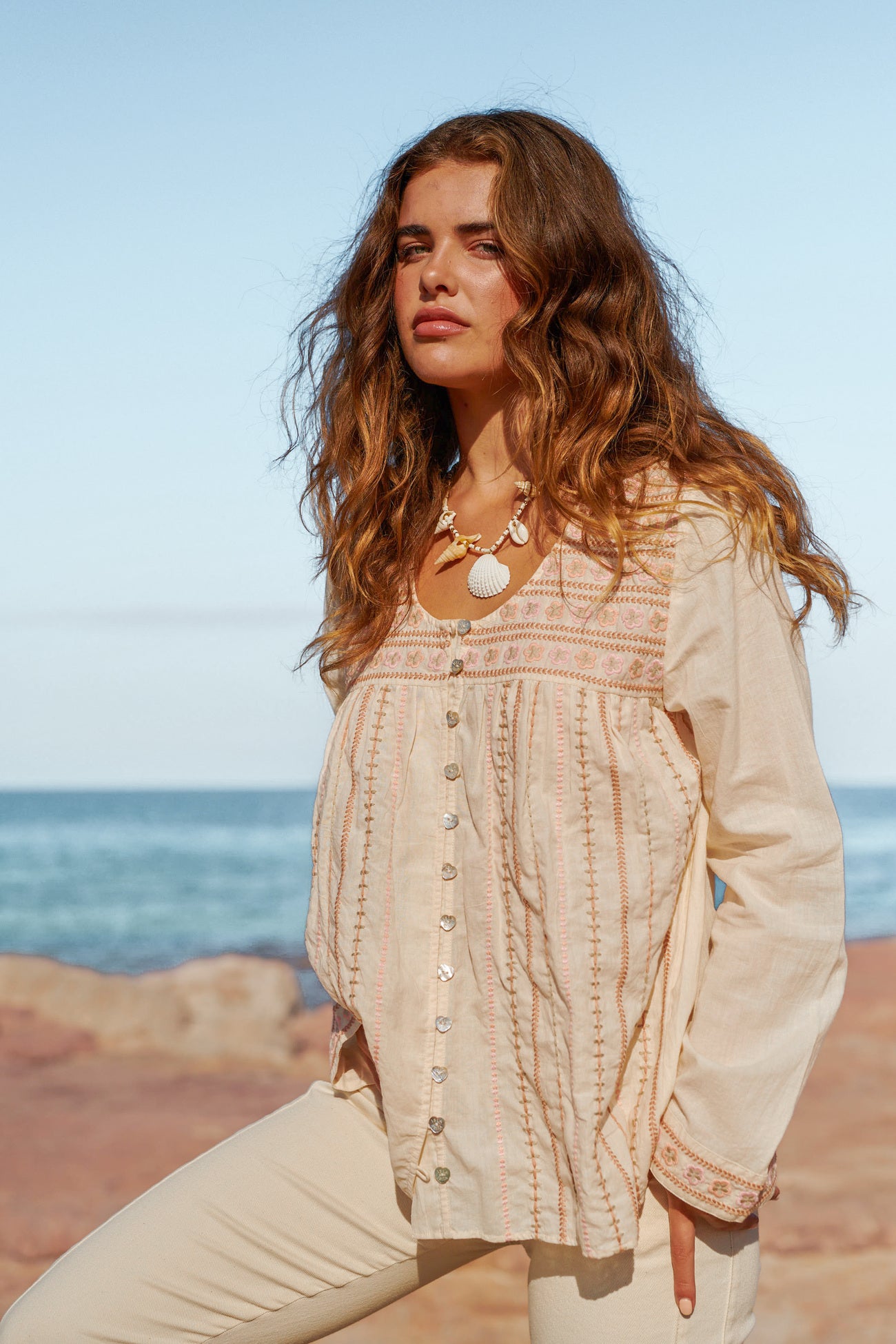 Embroidered T-Shirt/Cardigan Free Spirit Cream