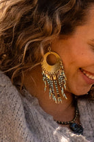 Product gegevens: Mooie hangende oorbellen, met goudkleurig metaal (Brass) en vrolijke glazen kraaltjes