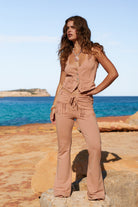 Product gegevens: Flared Model Pants, made of soft stretchy fabric, with lace closure and fringes on the front