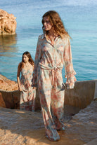 Give your wardrobe an update with the Baggy Pants Tropical Sunset, designed for sunny days. Long wide pants, fluttering smooth fabric, with nice print wear it with your favorite accessories for a real brands or ibiza look. Now available at Ibizamode - Discover more on Brands or Ibiza.