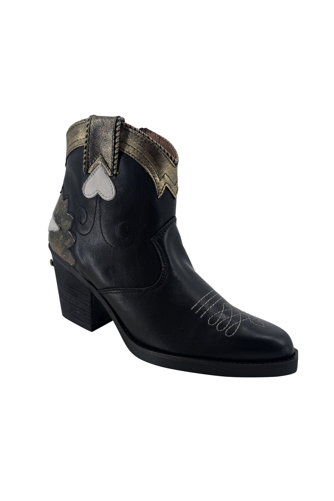 Product gegevens: Mooie western laars tot net over de enkel, met ritssluiting, hakhoogte 7 centimeter, de laarzen zijn van leer met kunststof zool en zijn gemaakt in Spanje